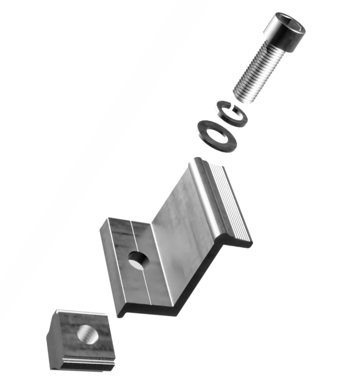 Sistema coplanar para paneles fotovoltaicos en aluminio AW 6005A T6 con tornillería de Acero Inoxidable A2. Válido para disposición de paneles en horizontal y vertical en superficies de teja, pizarra y chapa. El soporte de anclaje variará en función de las superficies: losa de hormigón, viga de madera, acero…